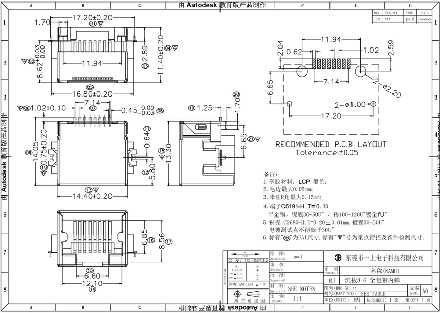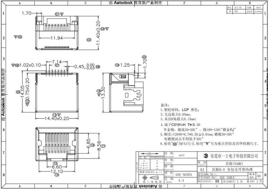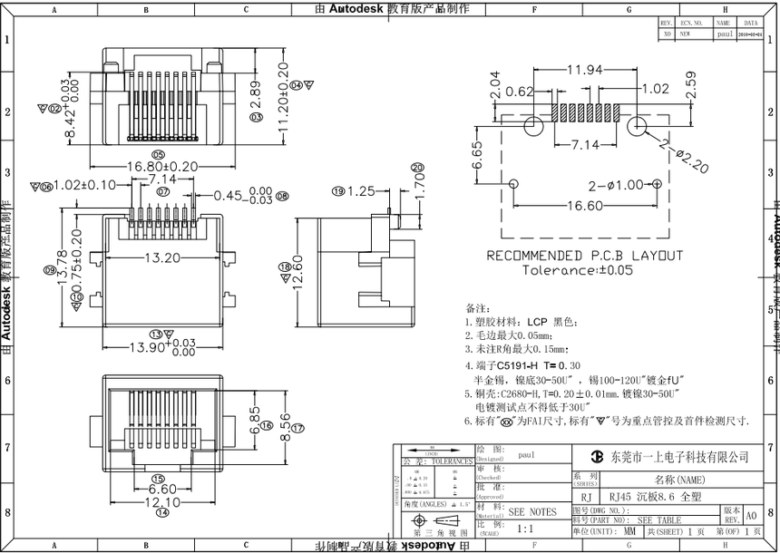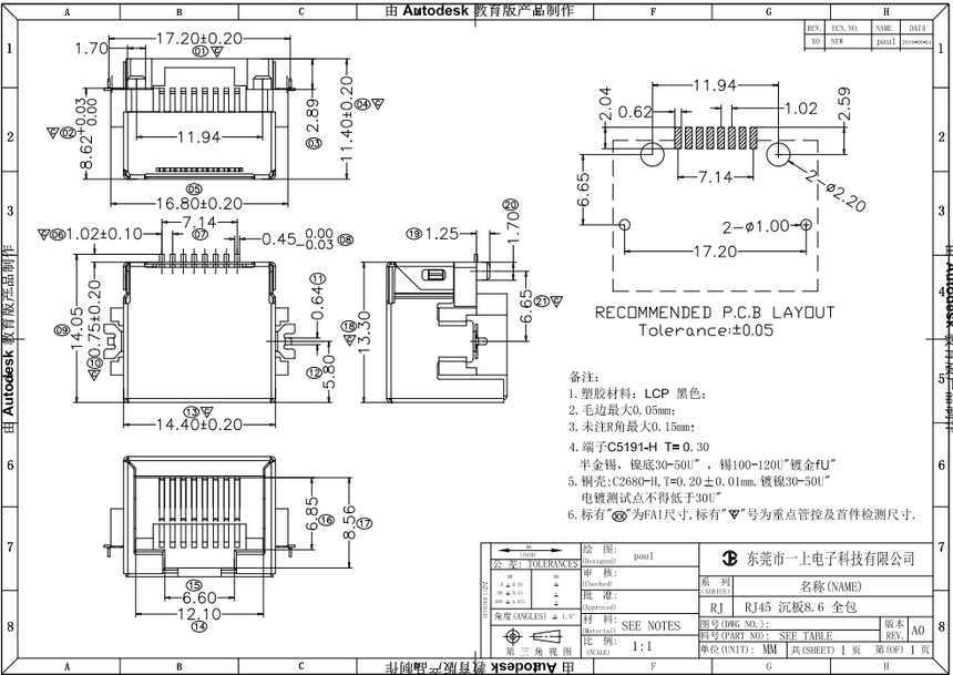 首页 >> 产品中心 >>RJ45 成品系列 >>RJ45 >> RJ45沉板8.6高系列