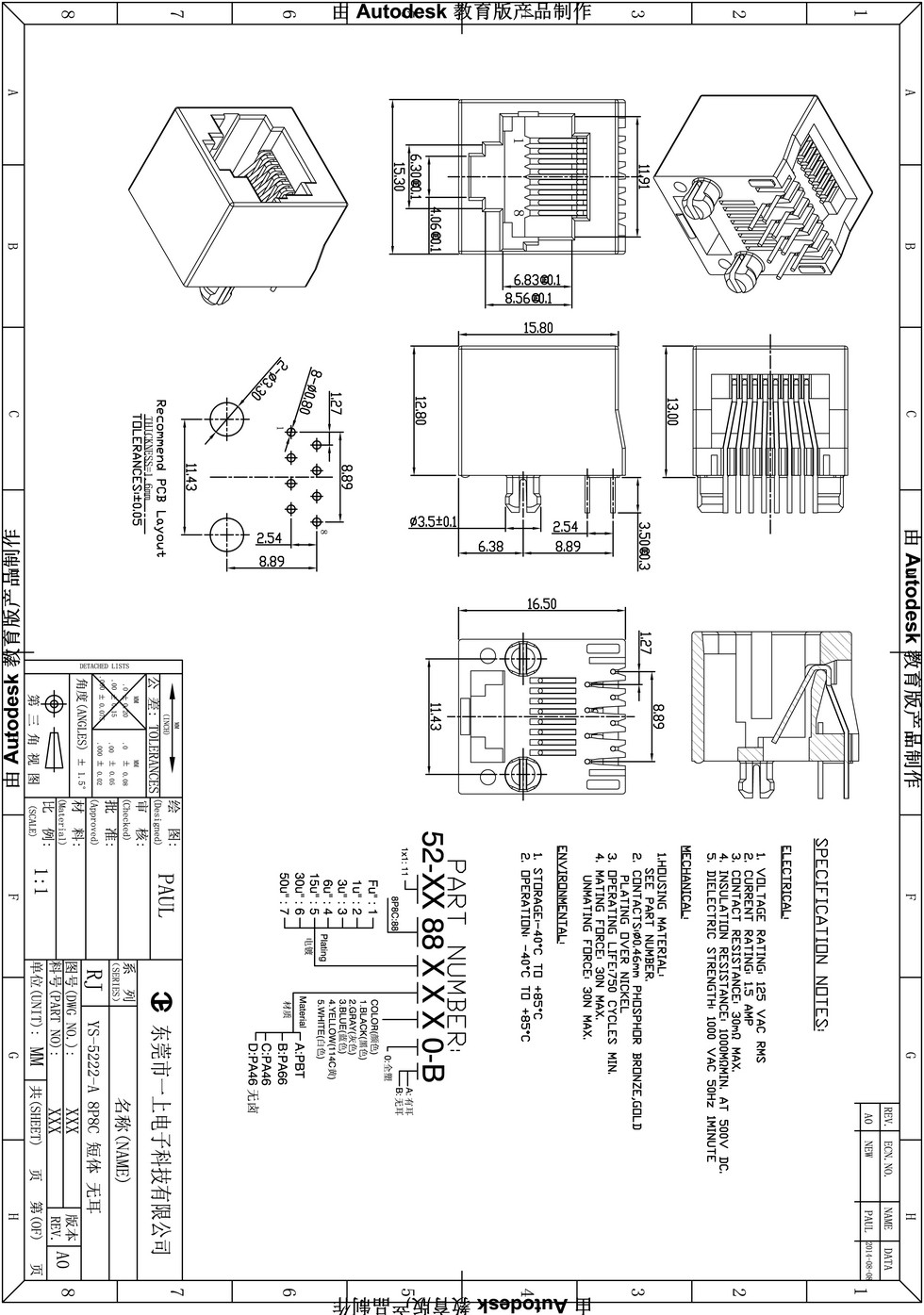 YS-5222-A 8P8C 短体 无耳