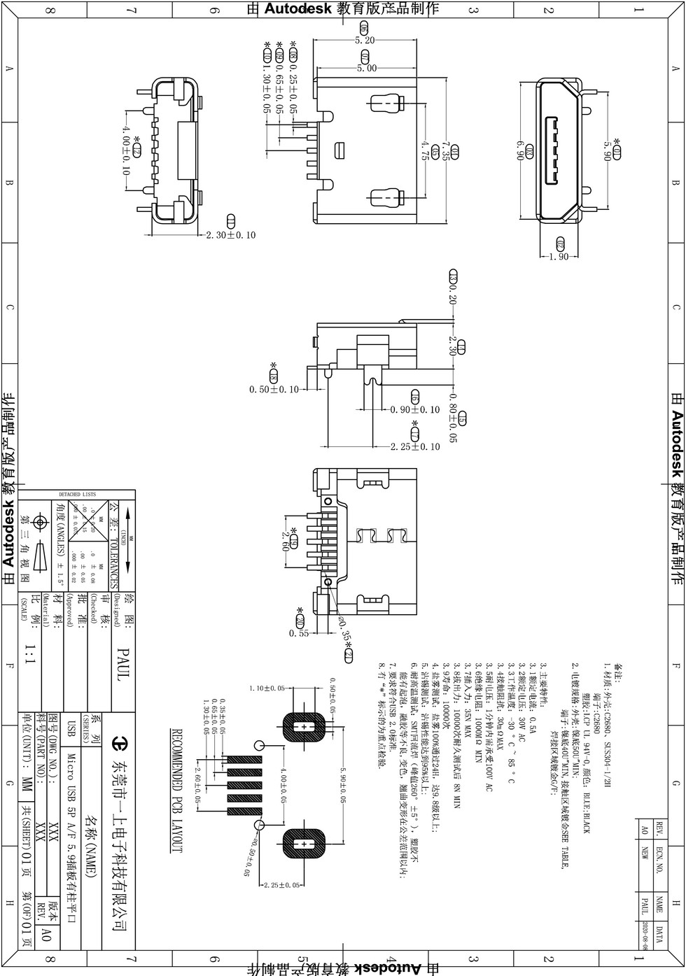 首页 >> 产品中心 >>连接器成品系列 >>Micro 系列 >> Micro USB 5P AF 5.9插板有柱平口