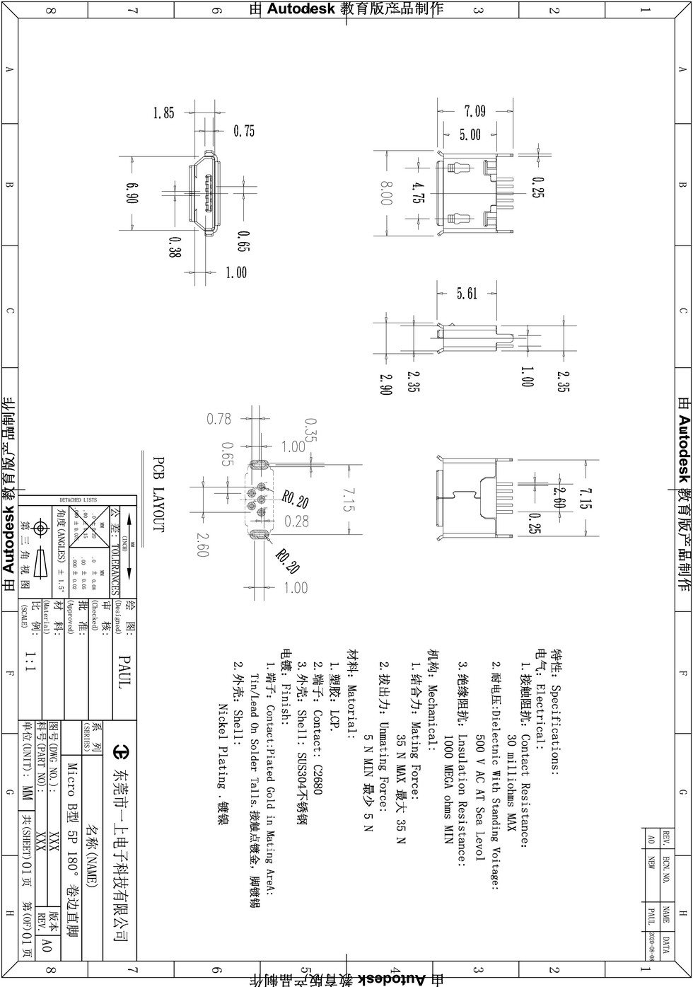 首页 >> 产品中心 >>连接器成品系列 >>Micro 系列 >> Micro B型 5P 180°卷边直脚