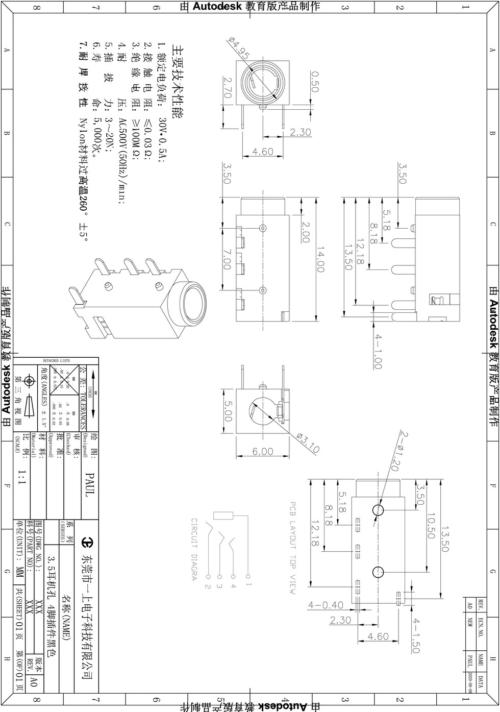 首页 >> 产品中心 >>连接器成品系列 >>其他连接器 >> 3.5耳机孔 4脚插件黑色